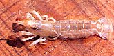 和名はアナジャコ体が黒褐色でスナモグリのような大き なハサミがない。ウロダイ、キビレ、スズキカレイ釣りのエサ として使う。 |