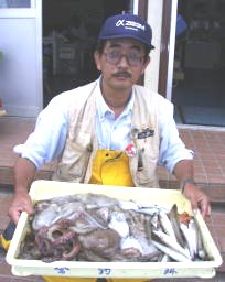 雨もようの天気の中よくがんばりました。キス・ギマ・黒鯛・タコと魚種も豊富でした。 どうもお疲れ様でした。次回もがんばってください。