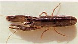 和名はアナジャコ体が黒褐色でスナモグリのような大き なハサミがない。ウロダイ、キビレ、スズキカレイ釣りのエサ として使う。 |