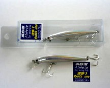 浜名湖でメインとなる狙い方はシャロー打ち、だから、キャスト力のあるミノー系が有利。そこでジャクソン社にボクのワガママを聞いてもらい、F・モデル(S・モデルよりも細身)にシンキングになるようにウェイトの上乗せと、フックサイズをアップした物を、標準装備しました。このフックなら60cmオーバーも強引なやりとりが可能です。かなりルアーの動きを殺してあり、初めて使う人は、あまり動かぬルアーに不安になるかと思いますが、それはそれなりのボクの狙いがあるので自信を持って使ってみてください。動かぬルアーの狙いを知りたい方はお店に遊びに来てください。 by 良太 |