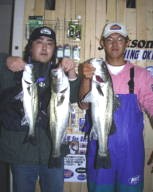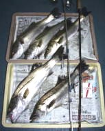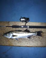 (3月15日)当日、ハローフィッシングの原稿の〆切に追われ家で原稿作成。「多少の風は、あるものの、〆切じゃなけりゃボートで狙ってたのになあ」なんて思いつつ、作業が終わったのがPM10:00ちょっと前。走らぬ車に飛び乗り瀬戸水道へ!水面にはベイトがチラホラ。バイブレーションとミノーを交互にキャストするもののノーベイト、んー細かい事はハロー見ていただいた方がわかると思うので省略!ゲットしたのは、72cmと66cmのシーバス君 by良太 |