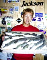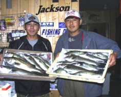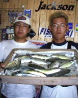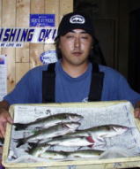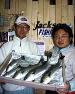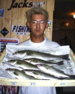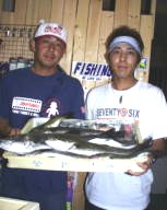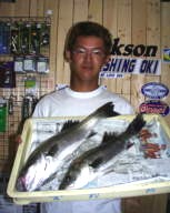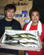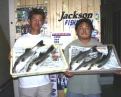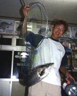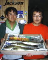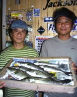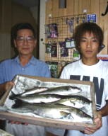 (8月13日)昨日に続き本日、柴田さんと中村さんをガイド。昨日釣れたポイントに行ってみたものの魚がいなーい。これはマズイと内心アセリながら移動してみると中村さんにヒット!船の下に突っ込まれながら50cmクラスをキャッチ。ホッとして、少し移動40cmクラスをボクはバラし…。次も30cmクラスをバラし…。あー情けないと反省しつつ、25cmクラスを2匹キャッチ。中村さんも25cmクラスをキャッチし、本日終了であります。 by 良太 |