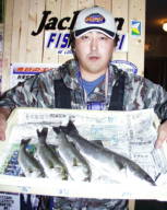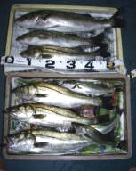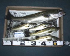 (3月19日)天候、晴れ小潮 風はほぼ無し19:30にフィッシング沖から出船。海上はベタ凪で、ライトなしでもまわりを見渡せる位でした。とりあえず3番筋狙いで船を流して、浅場から深場をジャクソン、アスリートミノーS9のチャードリュースで攻めまくりました。ベイトの群れ海底にはウィードがあり水面では小さいけれどベイトの群れがいました。僕はそのベイトを見つけるとそこにキャストをし巻きというように、何度も繰り返していると、コツンという超ショートバイト!!すかさずフッキングすると、何といい手ごたえ!やっとの事でランディングして時間を見ると21:50まだいけると思いキャストしつづけたけどバイト無し22:40だったので戻って量ってみると68cm2.75Kでした。これからの浜名湖が楽しみです。 by幸二 |