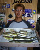 (9月8日)スゲー!久しぶりに大ハッスルした。な・なんと湖内にシイラの子供がウジャウジャ。朝昼関係なく、ガンガンヒットした。朝マズメは多少のテクニックがいるものの、あの大群は圧巻の一言。ジャンプしながらルアーを追ってくる様は、ドキドキもの。しかもメッキ釣れて気分はウハウハ。メッキ狙いの方は、少々難しいので、お店で聞いてください。 ヒットルアーは、(バスディのバンジーメタル7M) by