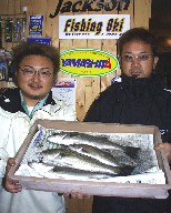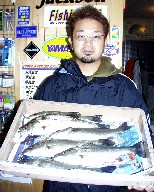 (4月20日)今日は秋田氏と2艇に別れて出船。中之郷に行ってみた。秋田氏は、3番で流してる。こっちも少し流すとポツポツ釣れだし、爆釣モード突入!40〜50クラスが10本、店に戻ってみると秋田艇が2人で12本。計22本 by 良太 |