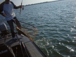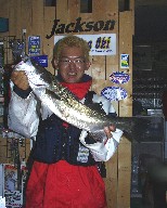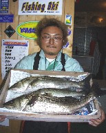 (6月13日)ウップスのメンバー内対決。東京連絡所も来湖しているので、ボクは永井氏と同船。上げ潮で45cmクラスをお互いに1本づつキャッチ、すぐ近くを流していた佐原君が良型をヒットさせているのを見つけた。秋田氏は45〜60cmを3本、玉ちゃんは65cmオーバーと45cmクラスを1本。佐原君が76cmでウィーナー!今年はデケーのが多いなー。by 良太 |