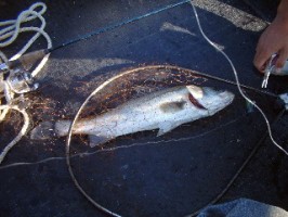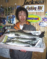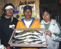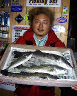 (4月29日)だめだこりゃ、潮の向きと風の向きが逆で、まったく流れない。56cmと30cmクラスがポロポロ。バラシを入れたら、10ヒット。キャッチしたのは3本。潮向きの逆風はサイアク! by 良太 |