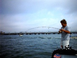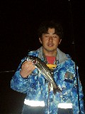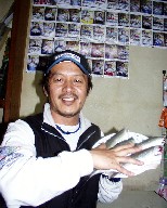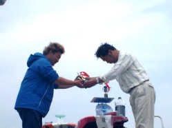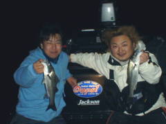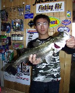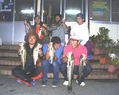 (5月3日)今日は新居マリーナのシーバスつり大会。Oopsのメンバー4人、3艘で出船した。3番に行ってみると、船だらけ、船を避けて奥に移動、魚はいるのにルアーに反応しないチョー渋い状態。夜中になるのを待ち3番へ戻りようやく58cmを1本。そのあと40cmを1本。あとはボチボチ。計量のため新居マリーナへ、全員が入賞でした。うーんビックリ!ちなみにボクは、優勝してしまいました。しかし本当に疲れた大会でした。 by 幸二 |