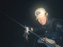 (4月7日)天気・晴れ・風少々 今日は玉木さんと2人で20:00に出船しました。初めは、さかなっけがなく、移動ばかりしていましたが、21:30頃にアタリが出だしました。最初は、アタリがあるのにハリがかりせず、だんだんなれてきたのか、1本また1本とキャッチ出来ました。上げ止まりまで攻めて、6本ゲットでした。 by 幸二 |
