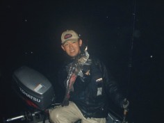 自分で操船し、ポイントに入り、ルアーを投げ、シーバスをヒットさせる。たいへんです。苦労しました。良太君、幸二君それにOopsの皆さんありがとうございました。これからもがんばります! by 玉木 |