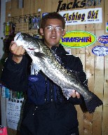 (9月24日)本日、店主マコトさんに夕方の1時間だけ付き合ってちょっ!と無事に拉致成功!エンジンをブン回してポイント到着、いきなり70cmクラスがヒットするもののブッチンチン!くやしがっているとマコトさんにヒット!その後マイロッドも曲がりシーバスゲット!60cmジャストを2匹で1時間ツアー終了。 by 良太 厳密にいうとオイラの方が、わずかではあるが、大きかった事を付け足しておく。 by 店主 Oop.s東京連絡所のN氏からシーバスレポート6が届きました。是非よんでください。(笑えます。) |