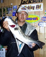 (5月27日)いろいろとヤボ用があって10日程出船できずイライラダー!最近良く聞くキレる少年?になってはいけないので今日は出船。たるい潮にマイッタ!45cmクラスを1本キャッチして、一つのパターンを見つけた。60cmクラスを3回もバラして超イライラ。ベイトがなくなったと思ったら、また60cmクラス?がヒット。今度はゆっくりとドラグを使って無事キャッチ。74cmでした。さあ明日も仕事だ。 by 良太 |