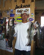 (6月17日)雨のち曇り、風無し 今日は1人で出船した。7;30に店を出て3番筋へいきました。最初の1時間はアタリもなく、移動の繰り返し、8:30頃に初バイト!アワセるとギギギギギーっとシーバスが走りデカイと思ったらバレてしまいました。その後にまたアタリがあり、あげてみると40cm、その後もヒットとバラシを繰り返し10:30に店に戻りました。全部で6本、サイズは40〜45cm。デカイのが混じればもっと楽しかったのになー。 by 幸二 |