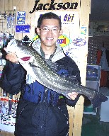 (6月13日)今日は、大会という事で気合いを入れて出船しました。中之郷へ行きひと流し目に50cmが1本かかり、いけると思い流していると、60cmがきました、周りはパンパン出ているのに、食わなくなってきた中、東京連絡所の鈴木さんにヒット!タモを持って待っていると、ボクの殺気のせいか、船ベリでバラシ!!、キャーと思いまた流し直してキャストすると45cmが釣れました。デカ・シーバスがいっぱいいるのがわかったので。ヒットできるようにがんばります。 by 幸二 |