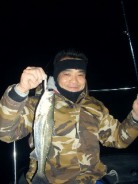 (4月2日)今日は狙い目。そう思ってフラフラーっと出船。3番で明るいうちからポロポロとヒットし、暗くなったらどうなっちゃうんだろう?とワクワク。案の定、暗くなってからは連発の後また連発。サイズは50cm止まりでそれ以上の魚はいない感じ。バラシは思い出せない程の回数。だから20回なんてものじゃないと思う。30?40?キャッチしたシーバスは35cm〜50cmが14本。がんばって1人で釣ったよ。 by 良太 |