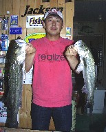(3月24日)今日は、昨日ボウズだった玉ちゃんとボクのコンビでリベンジ出船。雨が降る中、ベイトを探してみると、2週間前とは比較にならないほど多くなっており、次々にルアーをキャストしてみると、時折ライズも出だし「たぶん釣れるね」なんて話していると玉ちゃんにヒット。が、しかし、マジでバラシおった!くやしがる玉ちゃんを横に、今度はボクにヒット!50cmくらいかなー?とネットに入った魚を見てビックリ、体中、キズだらけ、とてもキープできる魚体ではないので写真をとってリリース。さあ明日も釣るで!by 良太 |