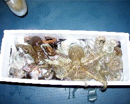 (6月25日)今、タコが最高に盛り上がっています。タコもけっこうデカくなってきて大物は1k近いものもいます。リール竿で釣るのが簡単でしかも、おもしろい!タコエギくんを付けたり、コイカ(エコギアー)を付けたりしています。今のうちに釣って冷凍しておけば、しばらくはタコに困りませんよ!天気が不安定なので、キビレの釣果がイマイチですが、釣りに出かける人が少ないからで、この時季はしょうがないかなーっ!雨が降るとキビレも移動し、大釣れの可能性もあります。シーズンも半分がすぎました。皆さんがんばりましょう! |