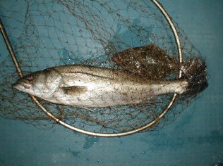 | 佐原君が釣ってきたシーバス。良太の言う、サケでいうところの(ケイジ)だったので、良太のいない今日は、私、玉木が料理人。良太のことを「奴は残念だったなあー」などと話ながら5分で消費。うまかったなあー。50匹に1匹程度しか混ざらない魚。ごっつあんでした。by 玉木 |