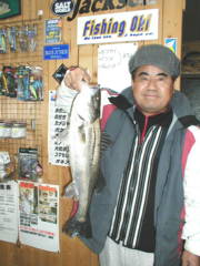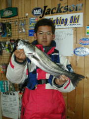 | (5月3日)今日は尾崎君と出船。しばらく潮がタルくてアンカーを下ろして雑談。潮が効いてきたのでキャストするとググーと1匹目25p。尾崎君にもヒットしたもののバラシ!場所移動すると一投目から50cmサイズ、尾崎君も50サイズを無事ゲット。アタリも多くなってきて、これからが楽しみだー! by 幸二 | ||