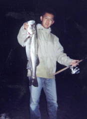 | (9月11日)チース玉木です。今日は瀬の上が船でいっぱいダー!という事で少し深みを狙って68cmのシーバス1本ゲット!満足じゃー。ちなみに子セイゴは数しれず釣れる。 by 玉木 |