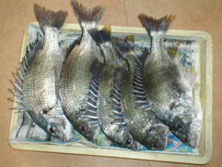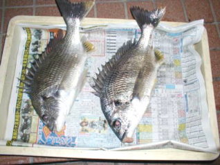 (4月30日)あまりにもいい天気なので、貞男ちゃんの介護も打ち切り、出船する。後から貞男ちゃんも柳田くんと出船する模様。8時頃満潮ということで、久々にA航路北側を狙う。なんといってもエサ取りが多い場所だけにユムシを持って出かける。明るいうちはエサ取りも多かったが、暗くなってからは、それほどでもない。なんとか2匹釣れた。腹がへっていたので早めに撤収。貞男ちゃんの釣ったセイゴを渡真利が解体し皆で食った。ウ・ウマイ!皆で飯食ってから再び貞男ちゃんの介護で2時間潰れた。 by