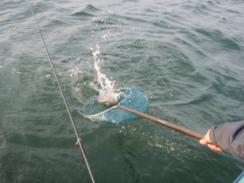 | さっそくアタリ!おーデカソー | タモ入れは慎重にっと |