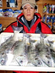 (4月3日)雨・風の最悪パターンが週末から続き、しばらく更新ができませんでしたが、昨日久しぶりに釣果がありました。そんな中、顔出しNGのお客さん!…って事で、お客さんに代わり撮影しました。 週末の天気に期待したいところです。 by 店主 |
