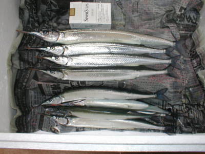 | (3月27日)サヨリがボチボチ釣れだしました。数はあまり望めませんが、肥えていてサイズもグッドです。 by 店主 |